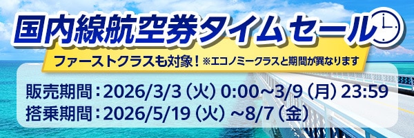 期間・路線・便において設定のない場合や金額が異なる場合がございます。また、販売座席数には限りがございます。