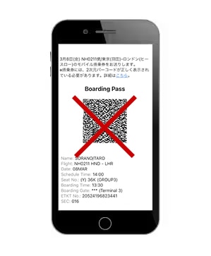 モバイル搭乗券をご提示の際、バックライトが消えていたり、画面に保護シールが貼られていると読み取りが悪い場合があります。