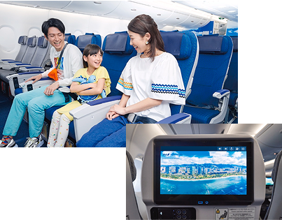 搭乗後は、ゆったりとした座席で、心ゆくまでくつろぎの時間を。充実した機内エンターテインメントで、快適な空の旅をお楽しみください。